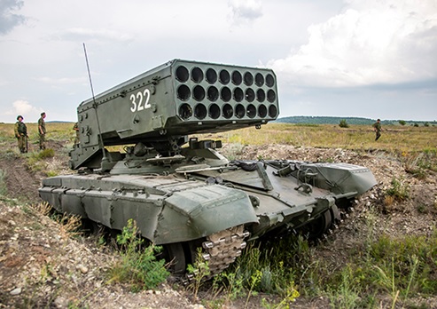 Serviciul de presă al Regiunii Militare Sud din cadrul Forțelor Armate ale Federației Ruse a anunțat, pe 20.09.2018, că, în cadrul unui exercițiu tactic cu dublă partidă la nivel batalion al unor subunități de infanterie moto, echipaje ale aruncătoarelor de flăcări grele Solntsenek aparținând armatei de arme întrunite din Caucazul de Nord au distrus adversarul aflat în munții Osetiei de Nord.