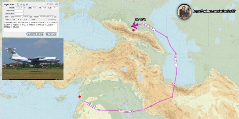 Comentariu remnmilitaryblog.com: În utlimele zile, Aviația Militară de Transport a Federației Ruse a efectuat mai multe curse aeriene spre Siria, probabil, având la bord tehnică și echipamente militare. Acest fapt arată că Federația Rusă a trecut deja la implementarea măsurilor anunțate de ministrul apărării, general de armată Serghei Șoigu, ca răspuns la doborârea unui avion de cercetare radioelectronică de tip Il-20 deasupra Mării Mediterane. Acestea vizează dislocarea în Siria de noi mijloace de război electronic și furnizarea către forțele siriene a unor mijloace automatizate de conducere pentru punctele de comandă ale apărării antiaeriene și a unui sistem de rachete antiaeriene de tip S-300.