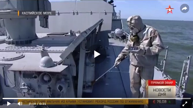 Potrivit scenariului exercițiului, în timpul marșului pe mare, navele de luptă Grad Sviyazhsk, Tatarstan și Daghestan ale Flotilei din Marea Caspică au intrat într-o zonă contaminată.