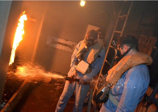 Personalul din sectorul avariat a îndeplinit normative de ermetizare a compartimentului în care s-a produs incendiul, de îmbrăcare a costumelor de protecție, de localizare și stingere a focului. De asemenea, au fost desfășurate activități de cooperare între militarii aflați în compartimentul avariat și postul central de conducere.