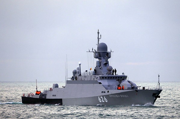Nava mică purtătoare de rachete Orekhovo-Zuevo a FRMN asigură monitorizarea directă a distrugătorului, pe timpul prezenței acestuia în Marea Neagră.