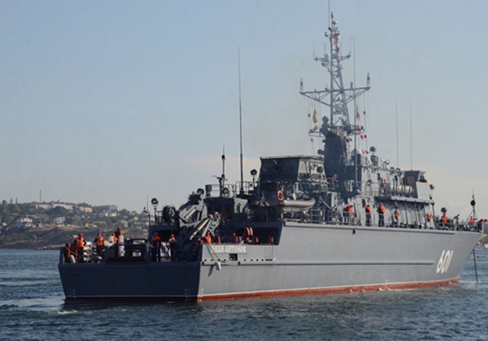 Echipajele fregatei Amiral Grigorovici, navei mici purtătoare de rachete Orekhovo-Zuevo și navei de patrulare Dmitri Rogachev au traversat zona minată de-a lungul culoarului curățat de dragorul Ivan Antonov, după care echipajele unităților de luptă de artilerie de pe nave au distrus machetele unor mine plutitoare.