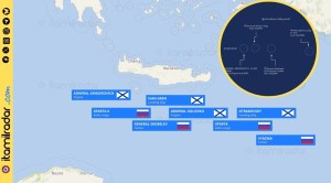 Acestea escortează cele două cargouri, Sparta și Sparta II, care sunt încărcate cu tehnica militară preluată din portul Tartus.