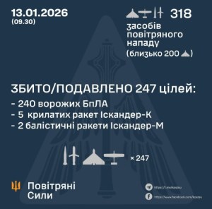 Potrivit unor surse ucrainene, în cursul nopții de 13.01.2026, Forțele Armate ale Federației Ruse au întrebuințat un număr record de rachete balistice și de croazieră de tip Iskander pentru a lovi ținte de pe teritoriul Ucrainei.